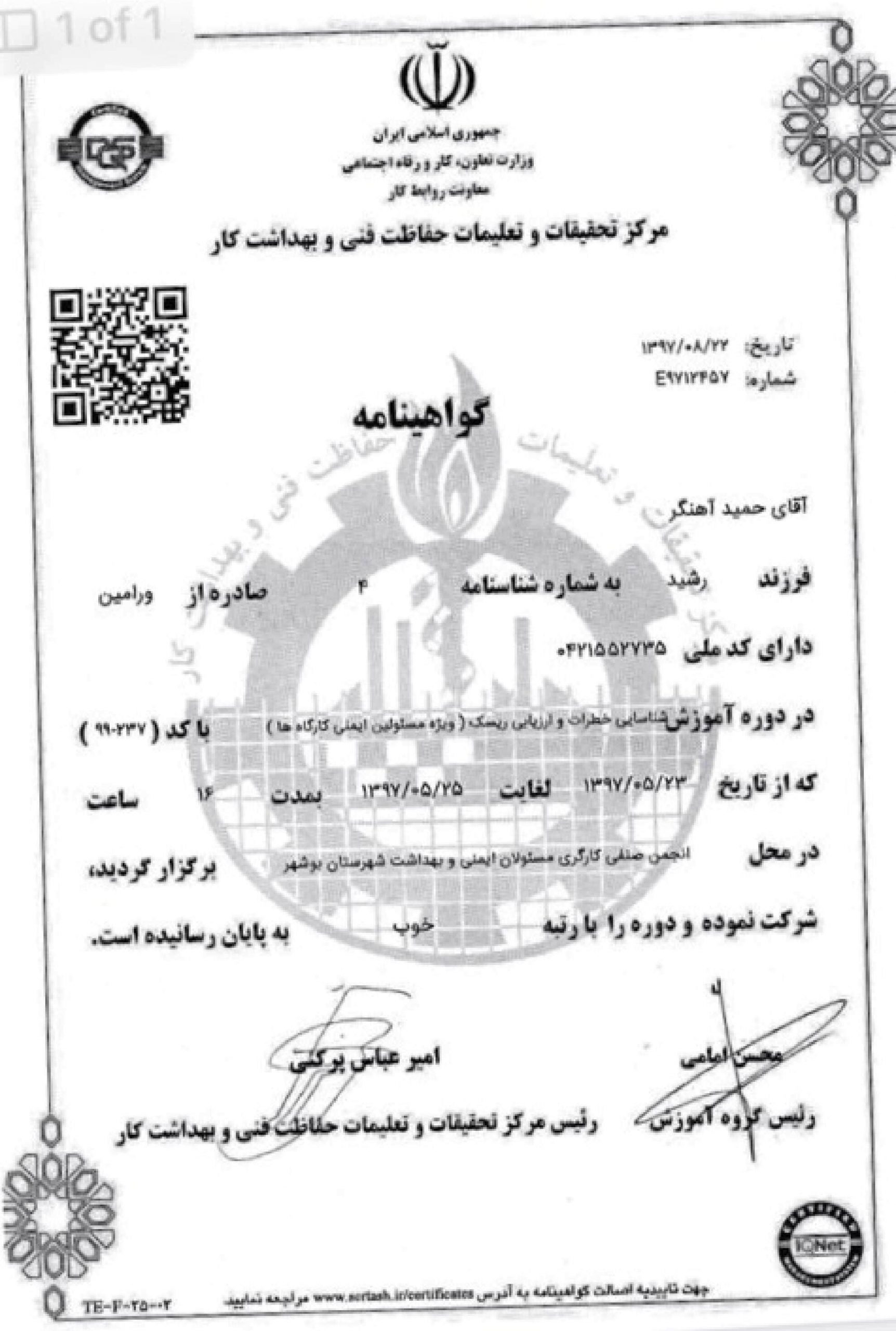 گالری تصاویر برخی از گواهینامه ها و لوح های تقدیر و تصاویر پرسنل برخی از گواهینامه ها و لوح های تقدیر گالری تصاویر پرسنل